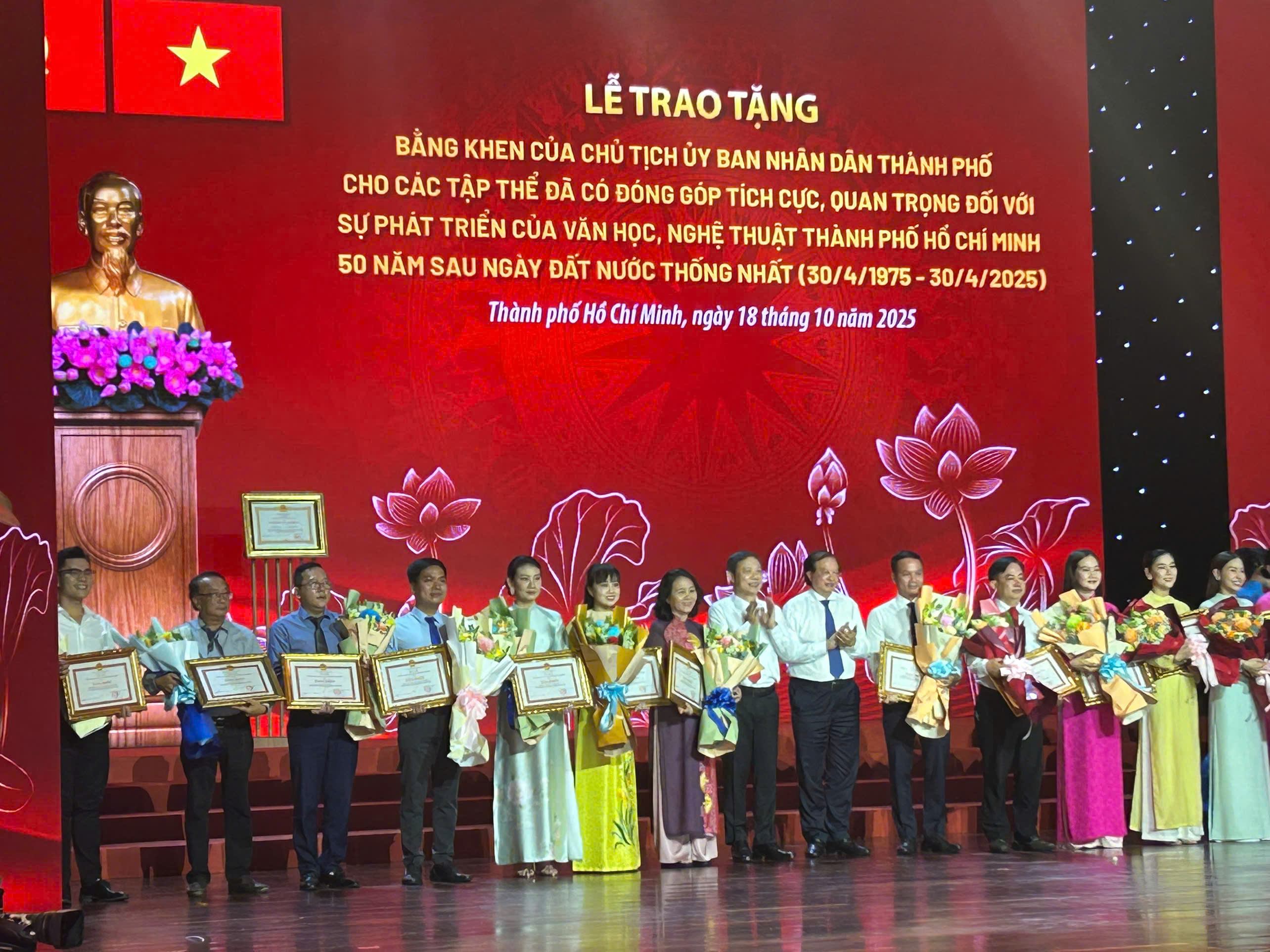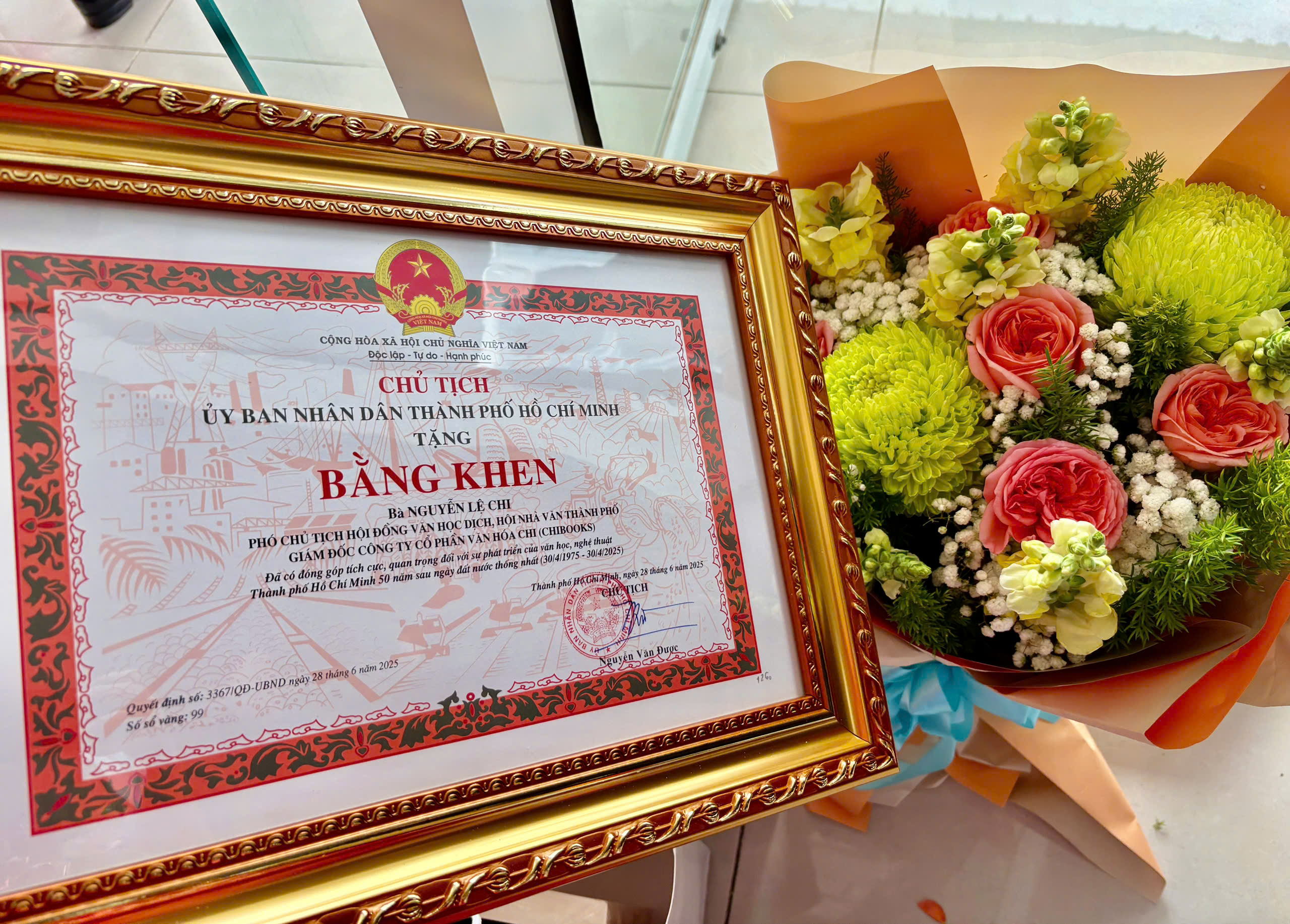 Sáng 18-10, Thành ủy TP Hồ Chí Minh tổ chức Hội nghị tổng kết 50 năm văn học - nghệ thuật (VHNT) Thành phố sau ngày đất nước thống nhất (30-4-1975 / 30-4-2025). Dịch giả Nguyễn Lệ Chi vinh dự được nhận Bằng khen của Chủ tịch Uỷ ban Nhân dân TP.HCM vì những đóng góp tích cực trong sự nghiệp phát triển 50 năm văn học nghệ thuật TP.HCM sau ngày đất nước giải phóng.